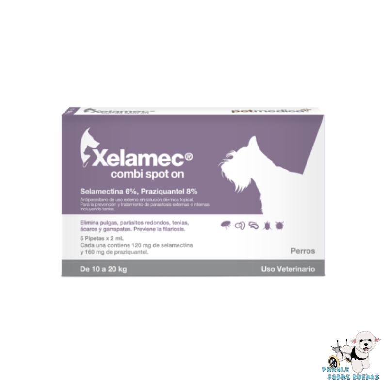 Precio final a pagar| Perro con peso 10 a 20 kg Protección por 30 días 1 pipeta x 2 ml Selamectina 6% / Praziquantek 8%. Antiparasitario de uso externo en solución dérmica topical. Para la prevención y tratamiento de parasitosis externoas e internas incluyendo tenias. Elimina pulgas, parásitos redondos, tenias, ácaros y garrapatas. Previene la filariosis |