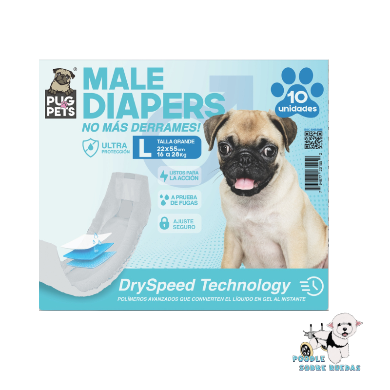 Pañal Desechable Macho Talla L Pug Pets Perro 10 Und